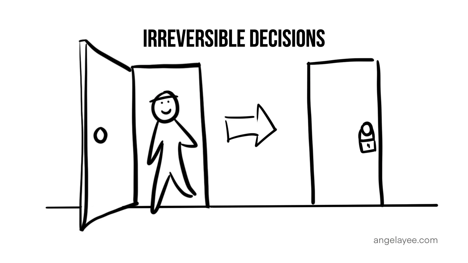 Irreversible decisions are big decisions that are better to remain unchanged. If needed, you could reverse them, but it’s difficult and costly.