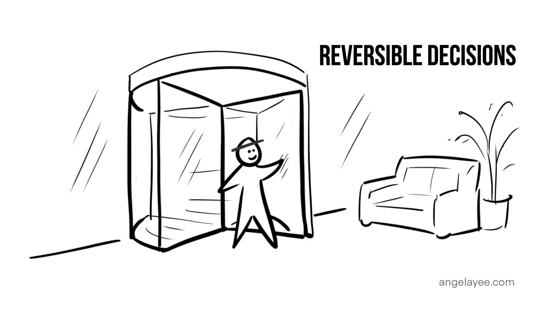 The other kind of decision is a reversible decision. This is like a rotating door, where you can choose to continue into the lobby or go right back out again.